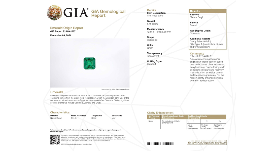 ![]() Redesigned GIA colored stone reportGIA, the Gemological Institute of America, will launch redesigned colored stone reports and new services on January 1, 2026. The new reports will feature an elevated design for enhanced storytelling, and expanded origin-determination services. The new colored stone reports will highlight the most relevant gemological information, making it easy for the trade and consumers to grasp the unique characteristics that bring each gem’s story to life. GIA will also offer origin-determination services for opal, peridot and demantoid garnet, adding to the existing country-of-origin services for alexandrite, emerald, Paraíba tourmaline, red spinel, ruby and sapphire, and the more recent country-of-origin determination for untreated jadeite jade and omphacite jade from Myanmar (Burma) or Guatemala.