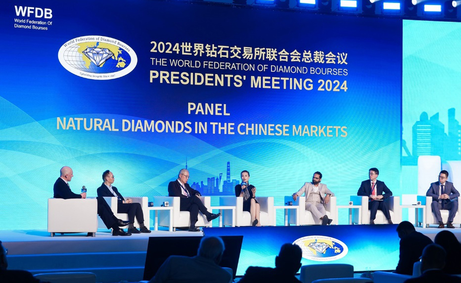 The World Federation of Diamond Bourses (WFDB) concluded its annual Presidents’ Meeting for 2024, held in Shanghai, China. The three-day meeting explored the most pressing issues facing the world diamond industry – the G7 restrictions, synthetic diamonds, and the lackluster Chinese market -- with expert panels, speeches, and discussions. The Presidents’ Meeting was held at the new Shangrila Hotel in Pudong and was hosted by Shanghai Diamond Exchange President Lin Qiang. It was attended by bourse presidents from around the world as well as by important Chinese guests, including Shanghai Vice Mayor Hua Yuan and Zhu Zhisong, Party Secretary of Pudong. A delegation representing the Ministry of Mines of Angola and Endiama attended as well as one from Namibia. An important conclusion of the various panels and discussions was the necessity of collaboration among organizations in dealing with the challenges affecting the industry, and the key role of the WFDB under President Yoram Dvash in leading industry wide initiatives. One such example is the recent letter to the G7 in response to the diamond import restrictions, organized by the WFDB and signed by the WDC, GJEPC, IDMA, which is galvanizing industry-wide support. In addition, WFDB leaders met personally with Chinese government officials and large private companies to promote the importance of investing in large-scale marketing campaigns in the Chinese market, to supplement and balance such campaigns in the United States. This message was met with agreement on the Chinese side. Among the expert speakers at the meeting were Ye Zhibin, Chairman of China Gem & Jewelry Association; Kent Wong, MD of Chow Tai Fook; Ahmed Bin Sulayem, Chairman of the Kimberley Process and ECCEO DMCC; Feriel Zerouki, Chairman of the World Diamond Council; Marcus Lung, AD of De Beers; David Block CEO of Sarine; Sissi Xu CEO of Natural Diamond Council in China; Mahiar Borhanjoo, Chairman of Uni Diamonds, and industry analyst Avi Krawitz. ![]() WFDB Bourse Presidents and guests gather at Shanghai Meeting![]() WFDB President addresses Opening Session![]() Speakers at Panel on Natural Diamonds in Chinese Market: (from left) Avi Krawitz, Kent Wong – MD Chow Tai Fook, Lawrence Ma - President HKDF, Sissi Xu – NDC China, Andy Golecha – KGK HK, Kellan Bo Dong – President Kimberlite Diamonds and Marcus Lung – De Beers![]() Panel on G7 Sanctions speakers: (from left) Avi Krawitz, Anoop Mehta – Pres. BDB, David Block – CEO Sarine, Alan Cohen – Pres. London bourse and WFDB representative on WDC, Ahmed Bin Sulayem – Chair KP and ECCEO DMCC, Feriel Zerouki – Pres. WDC (on Zoom)![]() At Gala Dinner from left: Lin Qiang – Pres. SDE, Moshe Salem – VP DCWC, Zhu Zhisong -Party Secy of Pudong, Yoram Dvash – WFDB Pres., Wu Jincheng – Mayor of Pudong New Area |